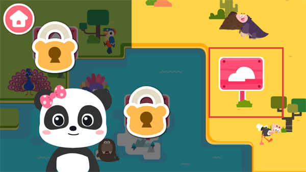 2、点击标注的【标识牌】,解锁对应场景区域,留意当前存在的锁定内容,后续完成任务可解锁更多动物互动模块。