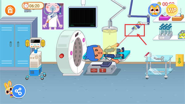3、核心玩法为模拟医生操作,孩子需根据病人病情选择合适工具进行治疗,在实操中了解基础医疗流程。