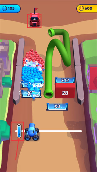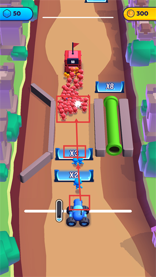 1、操控蓝色载具行进时,优先通过【X2】【X3】类增益模块,积累兵力后再对抗敌方【X8】规模的人群。