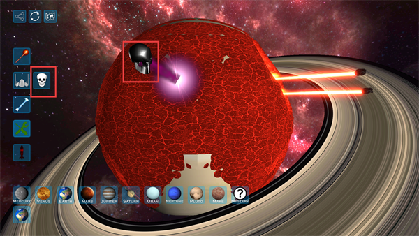 2、用左侧武器栏的攻击道具,对准行星区域发射,持续攻击可让行星出现破损效果。