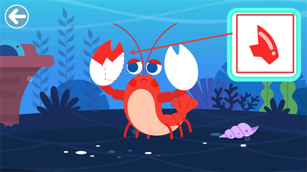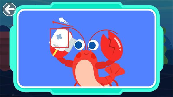 3、设置多种具体海洋动物救助案例,如贝壳填垃圾的珍珠贝、被船锚误伤的大龙虾等,让小朋友针对性开展救援,提升代入感。