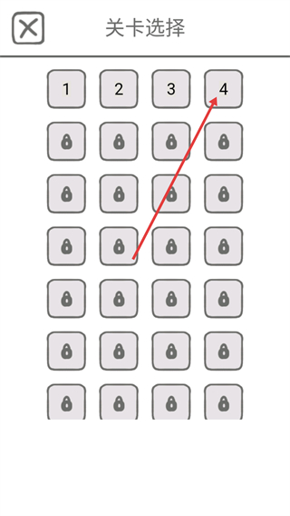 1、进入关卡选择界面,当前可选择【1】【2】【3】【4】关卡,其余关卡处于锁定状态,点击目标关卡即可进入对应题目的挑战环节。