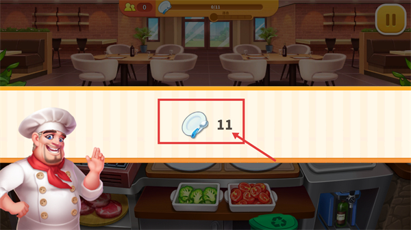 2、进入场景后,留意厨师旁显示的【盘子-11】标识,这代表当前拥有的餐盘数量,后续需合理使用以完成订单。