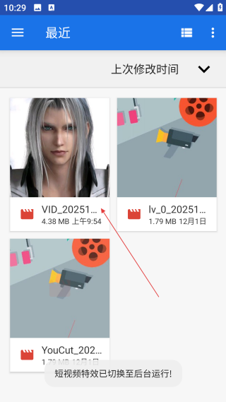 2、在最近视频素材界面,选中【目标视频】,进入该视频的编辑界面。
