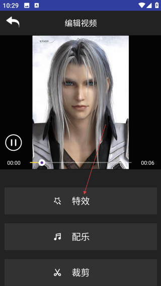 3、在视频编辑界面,点击【特效】选项,进入添加特效的功能界面。