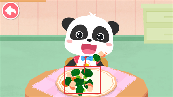4、确认盘中包含【西兰花】的食材已就绪,将该餐盘对应的食物递送给熊猫角色,完成当前关卡的投喂任务。