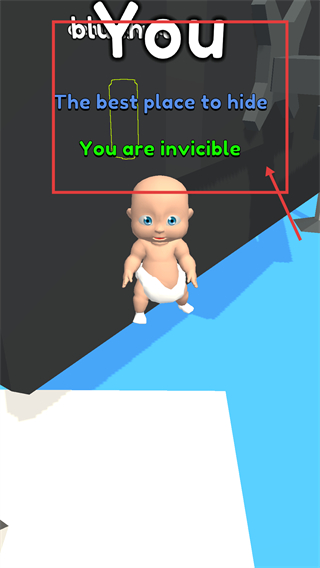 4、进入隐藏区域后,会出现【The-best-place-to-hide】提示,同时显示【You-are-invincible】,代表处于安全状态。