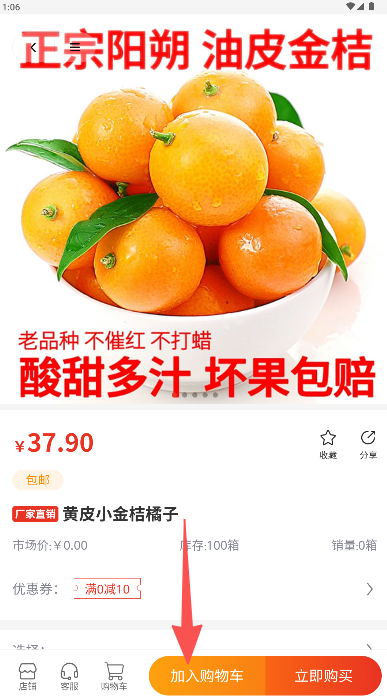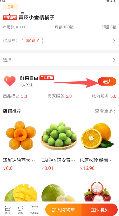 2、进入商品页查看详情并选择规格点击加入购物车完成下单。
