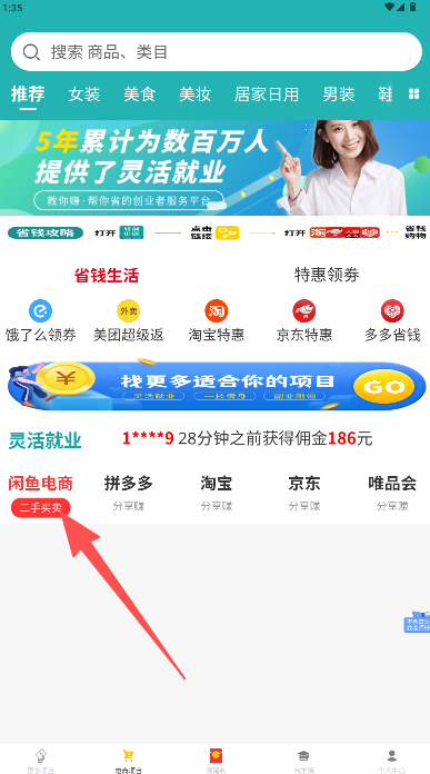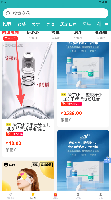 1、在首页搜索或浏览“闲鱼电商”平台商品。