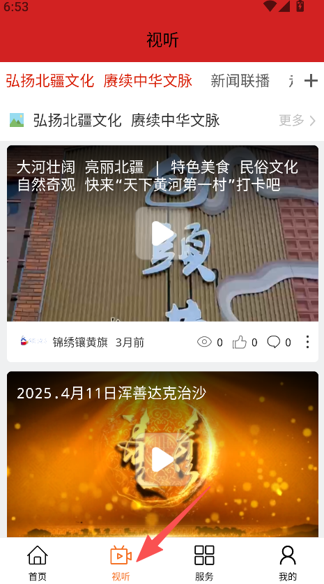 1、打开软件,点击视听板块,查看北疆文化相关内容。