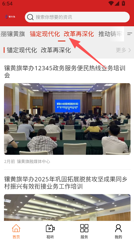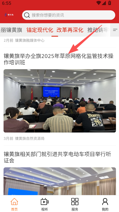 2、支持本地资讯浏览功能,在首页可查看政务培训、乡村振兴等镶黄旗本地事务信息。