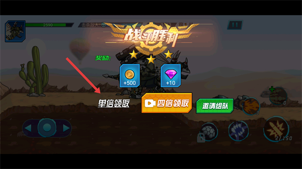 4、关卡胜利后,点击【单倍领取】获取奖励,完成本次关卡挑战。
