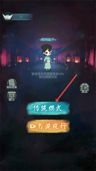 1、打开游戏后,点击选择【传统模式】进入游玩。