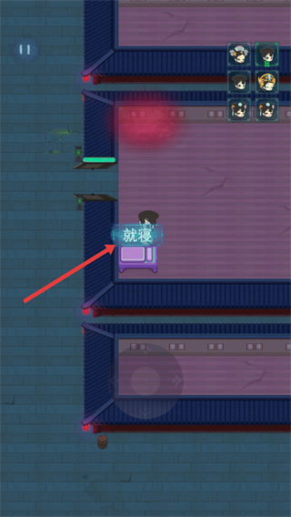 2、进入游戏,长按方框内【虚拟按键】操控角色,在倒计时结束前找到床铺。