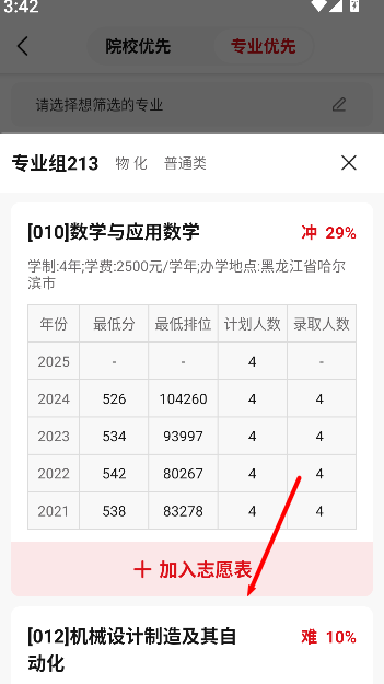 4、确认目标院校或专业后,点击“加入志愿表”,完成模拟填报步骤。