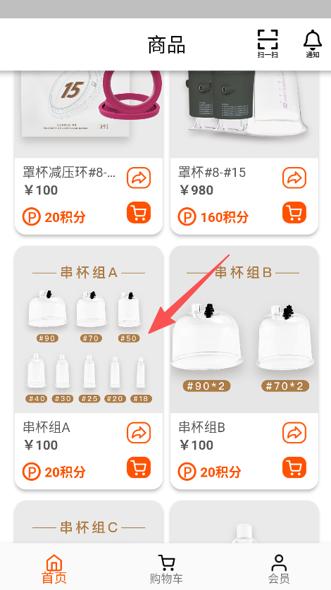 1、提供商品分类浏览功能,点击对应分类,可查看个护、探头等类别下的商品内容。