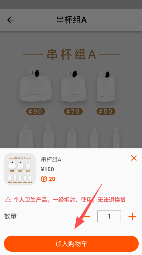 3、选择商品进入详情页,调整数量后点击加入购物车。