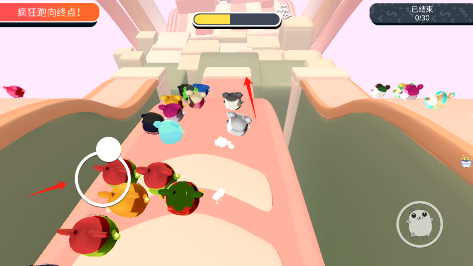3、游戏中,按住屏幕滑动,控制角色移动,争取跑到终点并拿到第一名。