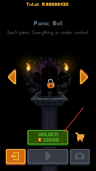 1、使用无限金币解锁【PanicBot】角色,获取其专属能力,助力在地牢探险中更高效躲避障碍与收集资源。