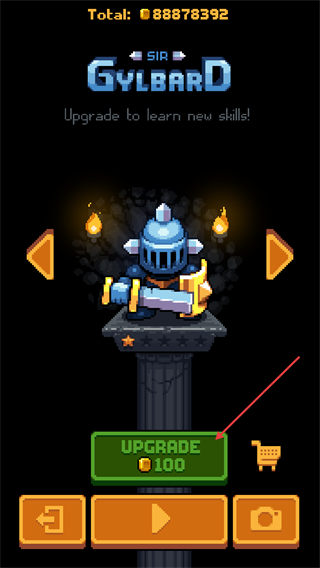 1、使用100金币升级【SirGylbard】角色,提升技能以增强地牢探索中的生存能力,为后续挑战积累优势。
