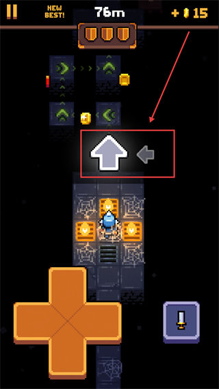 1、遇到【向上箭头】【向左箭头】时,优先按箭头方向移动,收集沿途金币,避开机关陷阱。