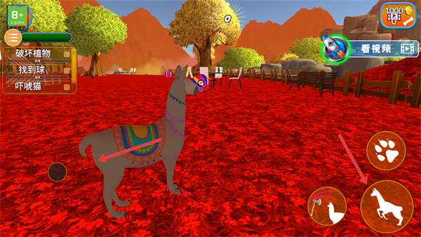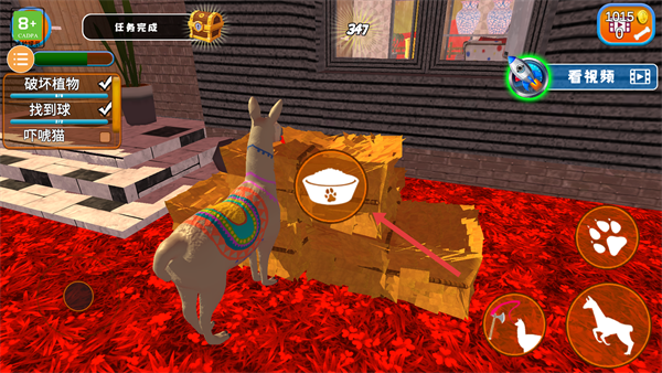 2、查看左侧【破坏植物】【找到球】等任务,操控山羊进行移动。