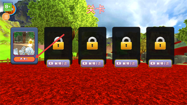 1、点击【关卡1】进入游戏,后续关卡需满足条件逐步开启,先从首关开始体验。