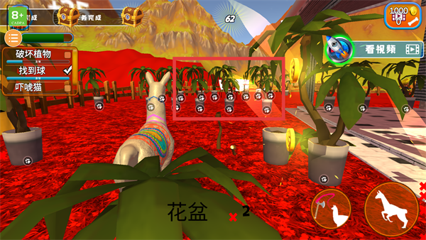 3、找到场景中的【花盆】,操控山羊撞击目标,完成【破坏植物】任务的对应计数。