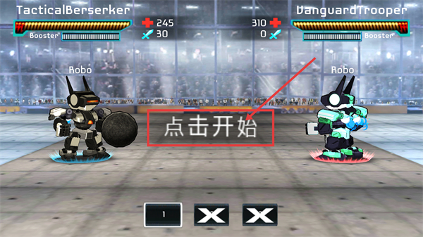 1、选择【TacticalBerserker】对阵【VanguardTrooper】,确认双方【Booster】状态后,点击【点击开始】进入机甲对战环节。