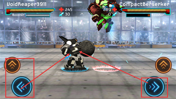 2、操控【VoidReaper:3911】时,通过左右箭头按钮调整位置,规避【CompactBerserker】的攻击,同时准备反击。