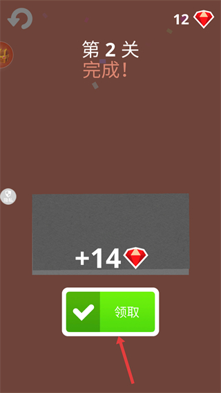 3、在关卡完成页面,点击“领取”按钮,获取该关卡通关对应的钻石奖励。