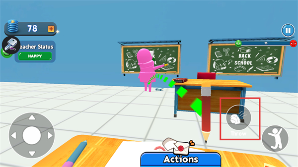 3、获取【纸团】道具后,点击界面的【Throw】按钮完成投掷操作,可提升关卡进度,留意老师的状态变化。