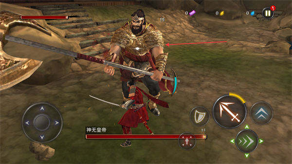 3、战斗时控制左侧移动圈躲避【神无皇帝】攻击,抓住时机用技能打出连招快速削减敌人血量。