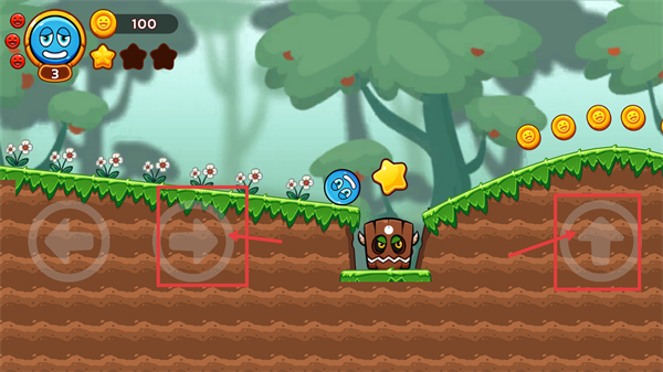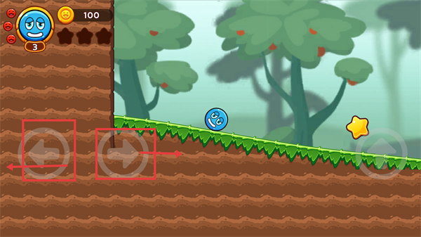 1、操控角色时,使用左右方向键移动,靠近场景中的【黄色星星】道具,收集它可推进关卡进度。