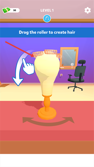 1、进入游戏,拖拽卷发器,进行假发制作。