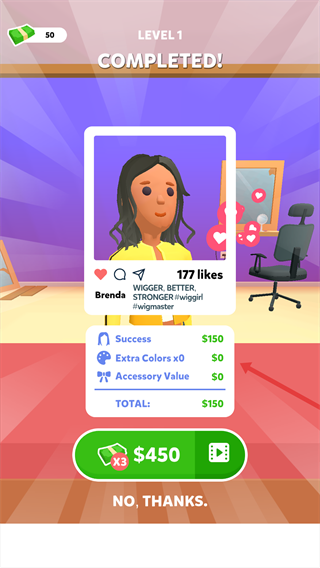 3、头发制作完成后,点击界面右侧的“NEXT”按钮,进入关卡结算页面。