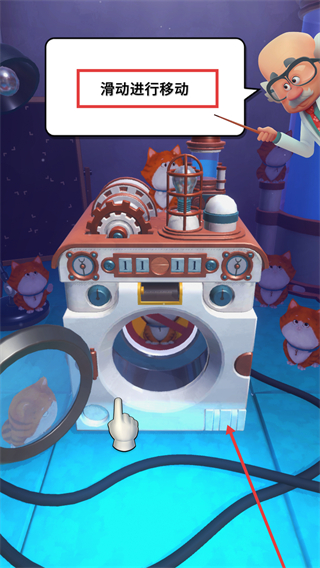 1、操控【时间机器】部件时,通过滑动操作调整位置,让小猫能靠近机器核心区域,推进解谜进程。