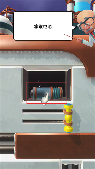 3、找到藏在机器内的【电池】后,拿取它作为启动时间机器的重要能源,助力时空穿越。