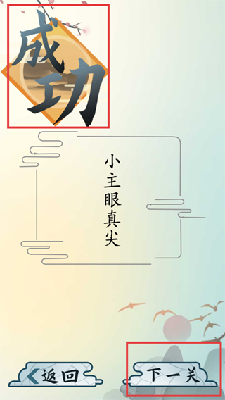 4、出现【成功】提示后,点击界面中的【下一关】按钮,即可进入后续的游戏关卡,继续参与新的挑战。