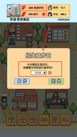 2、灵活调整经营策略,看着学生成绩提升学校声望上涨,体会策略生效带来的持续喜悦。