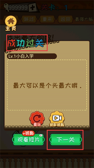 最强的大脑内购版是一款益智文字解答手游,进入游戏即可免费获得大量钥匙奖励。游戏打破传统答题模式,需运用逆向思维与超凡脑洞破解烧脑题目,每道题答案都令人耳目一新。采用清晰简洁的画风设计,搭配分级别的题目挑战,打造刺激的思维之旅。内含数百个坑爹脑洞关卡,看似简单的关卡背后暗藏玄机,既能训练逻辑思维能力,又可在茶余饭后带来轻松欢乐,适配各类人群随时体验,让玩家在不断闯关过程中持续感受新鲜感与探索乐趣。