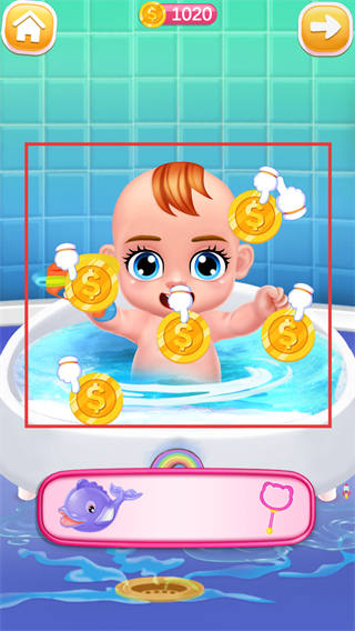 4、完成洗澡照料后点击宝宝周围出现的金币,积累金币用于后续照料道具获取。