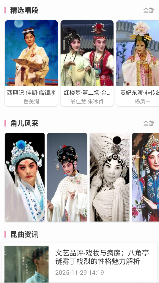 2、整合昆曲百科知识,系统收录流派、唱腔、服饰道具等内容,满足对昆曲文化的深度了解需求。