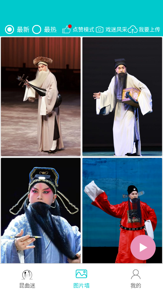2、图片墙界面,可查看角儿在表演中的剧照。