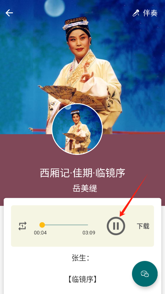 3、可点击进入伴奏,播放剧中演出的部分段落。