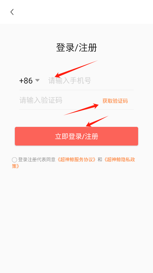 3、在这里输入手机号码,获取验证码输入,点击立即注册。