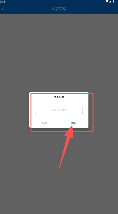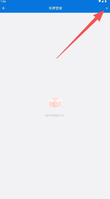 2、点击右上角“+”号图标开始添加新车牌信息。