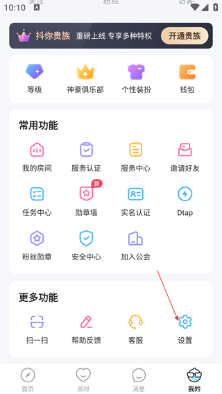 2、点击底部【我的】进入个人中心,在“更多功能”板块选择【设置】选项,进入设置界面。