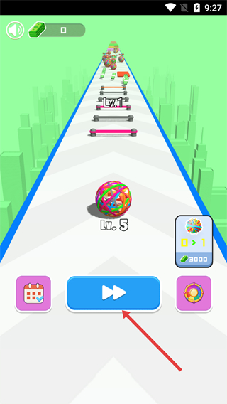 1、点击界面中的播放按钮,操控【Lv.5】的橡胶球,开启赛道冲刺挑战。