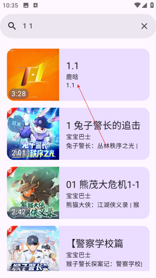 2、在搜索框输入【关键词】后,选择【目标内容】,进入对应的搜索结果页。